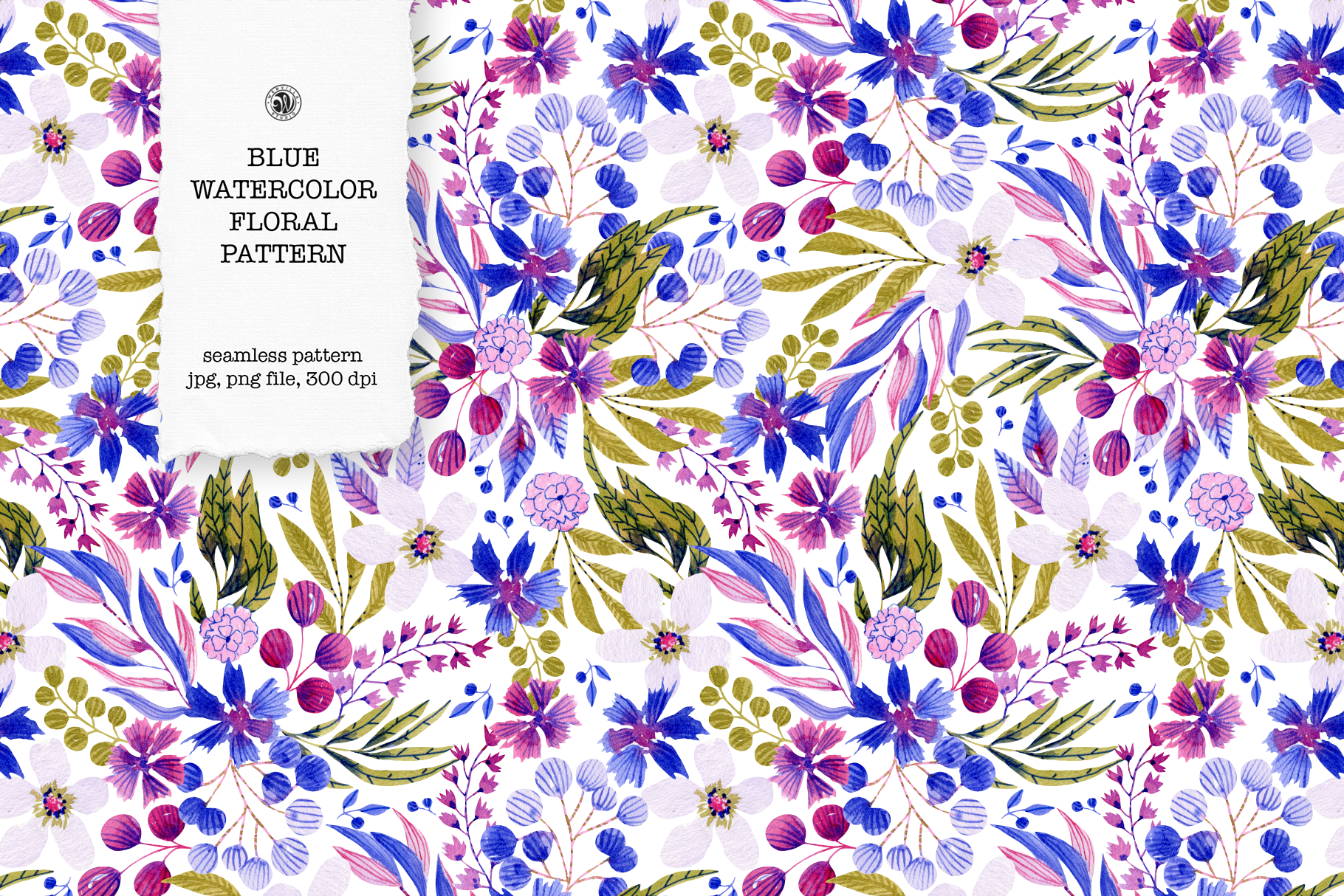 Blue Floral Watercolor Pattern