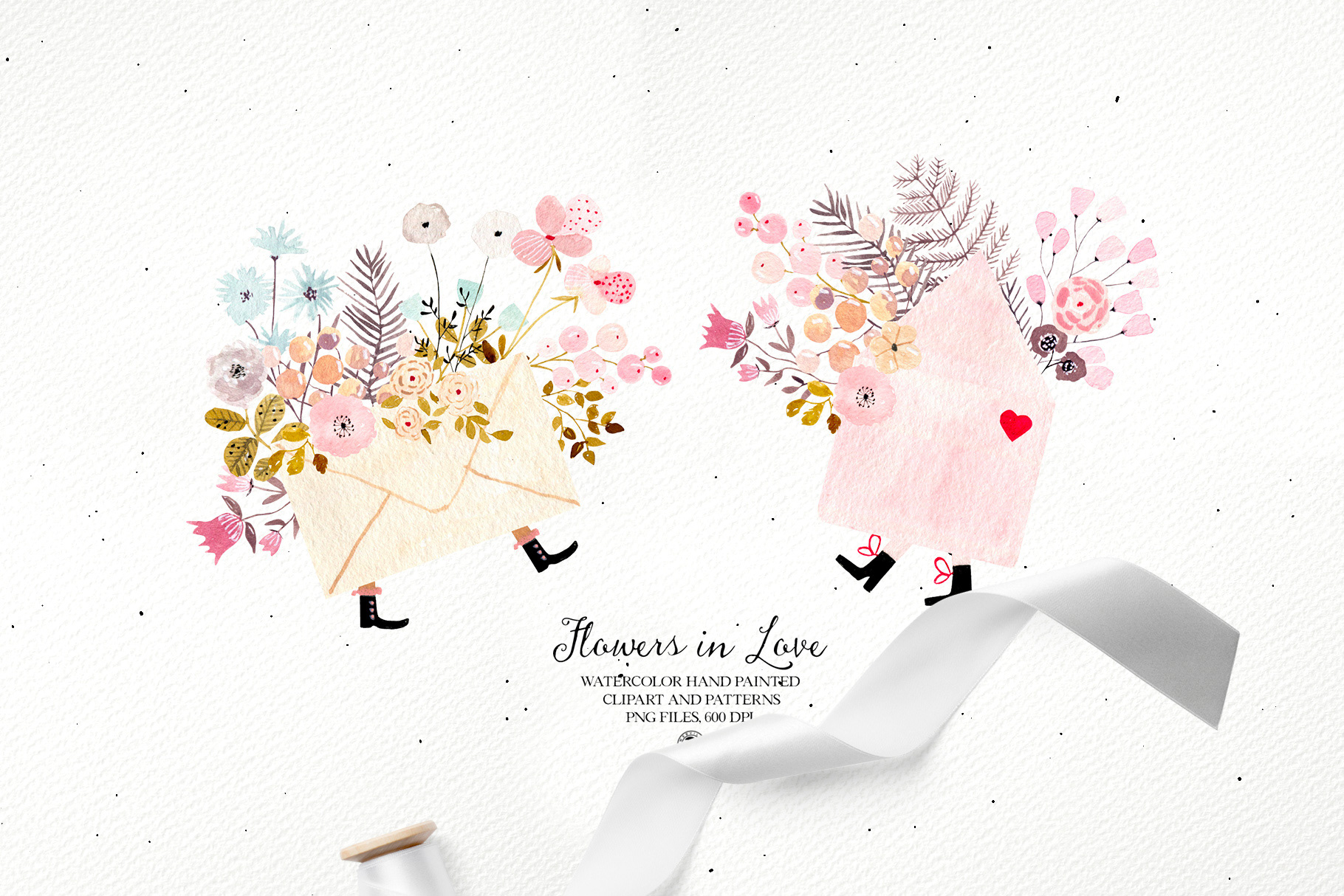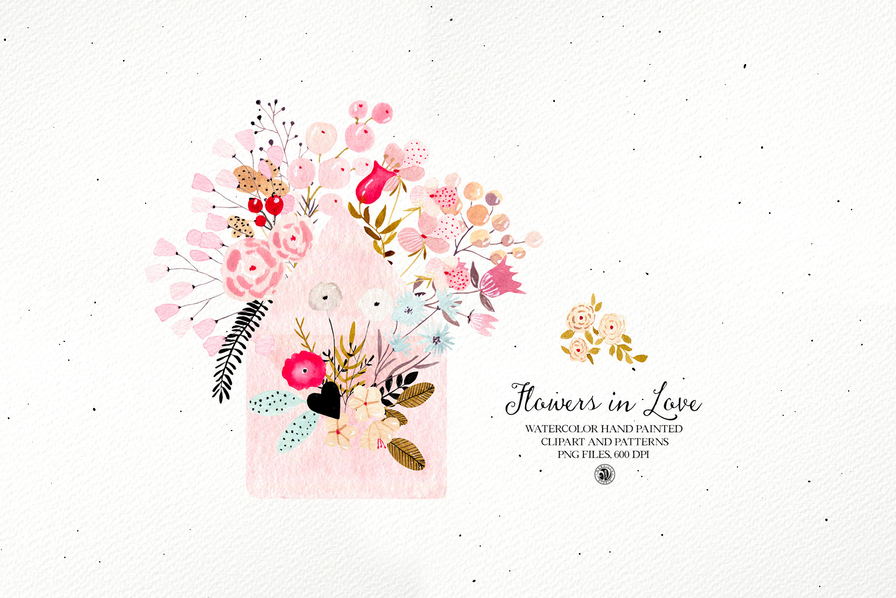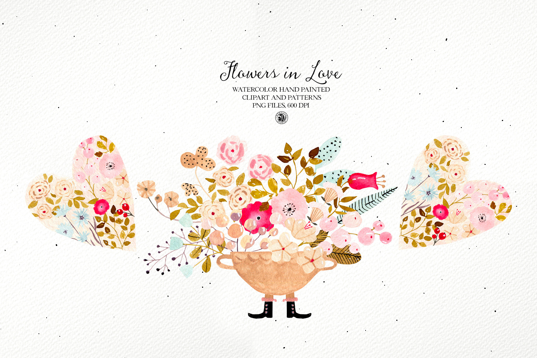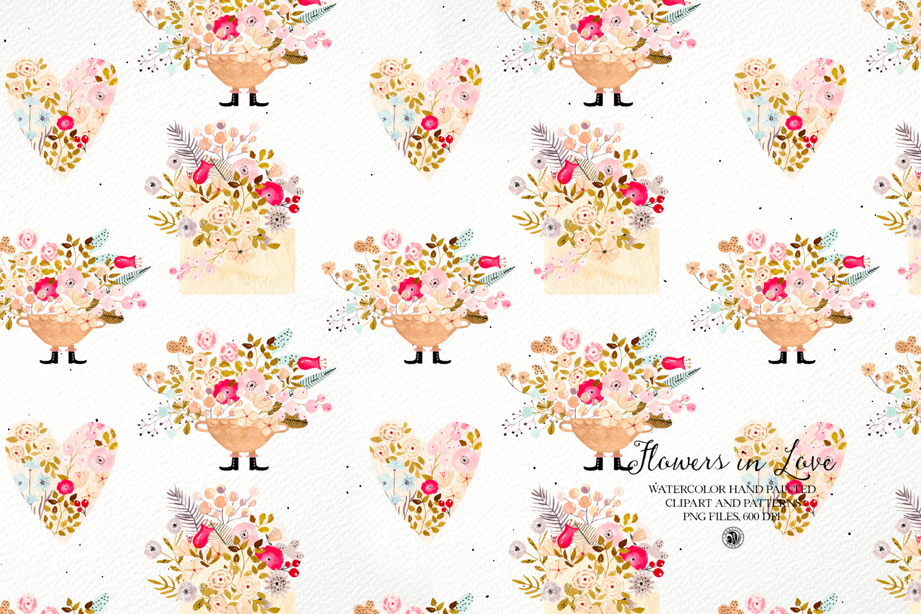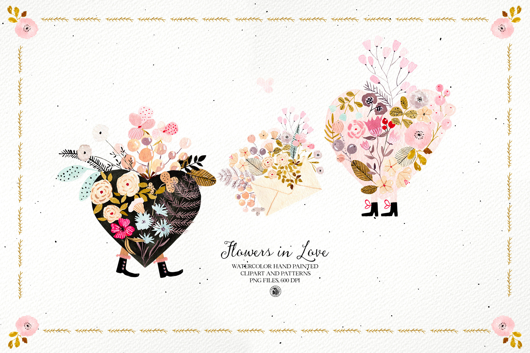 Flowers in Love - watercolor Valentines set