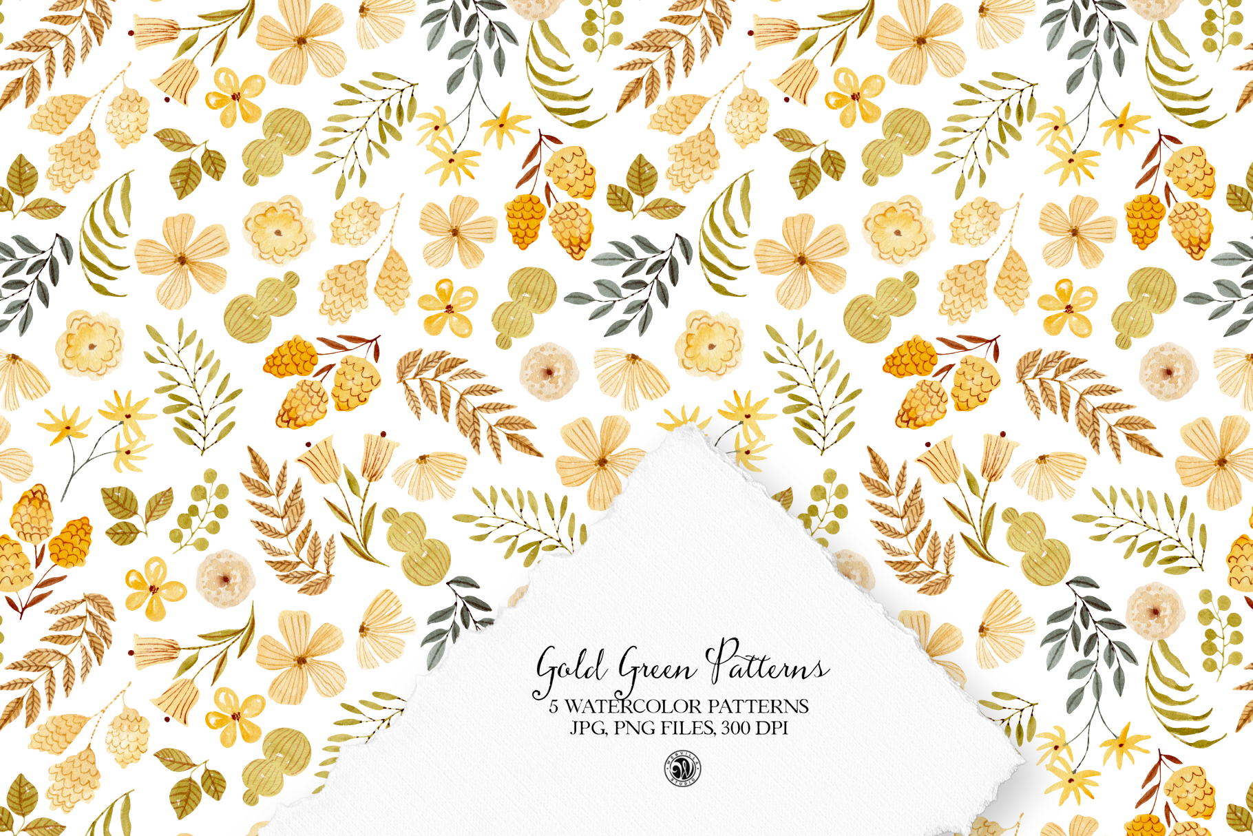 Gold Green Watercolor Patterns