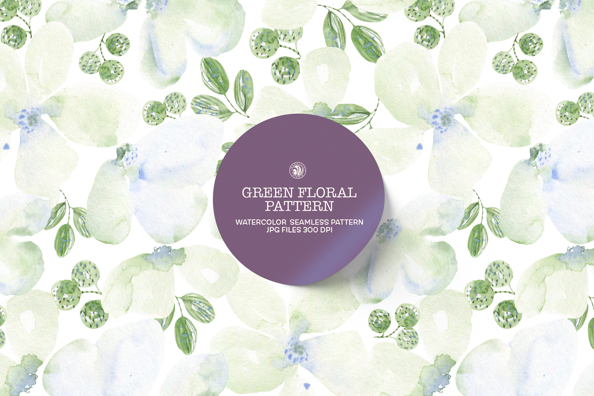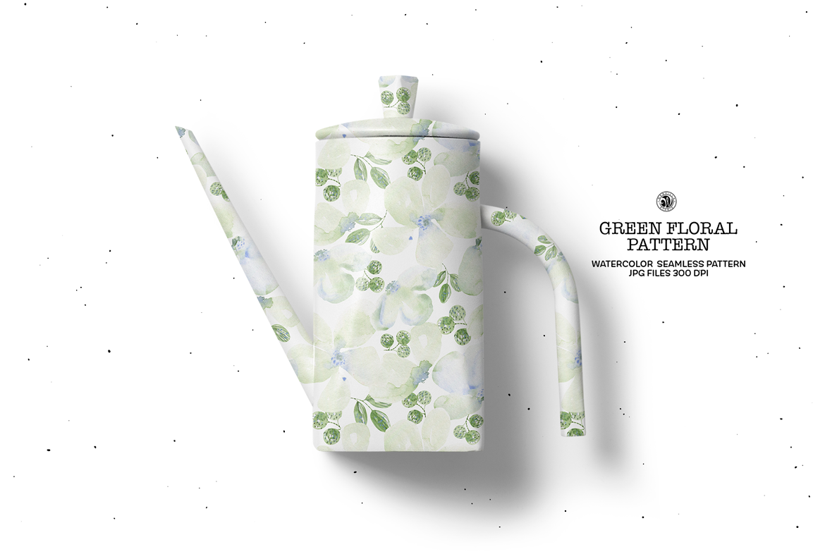 Green Big Flowers Watercolor Pattern