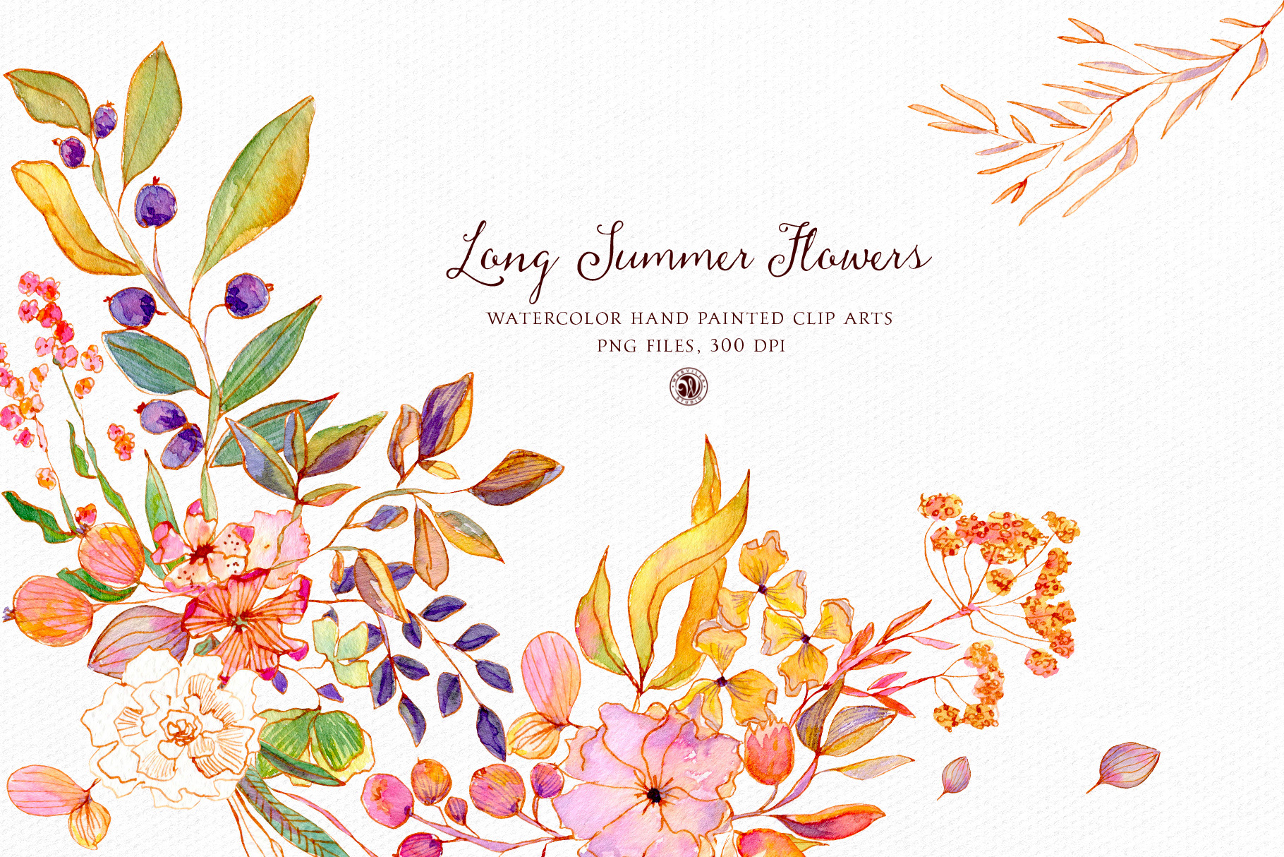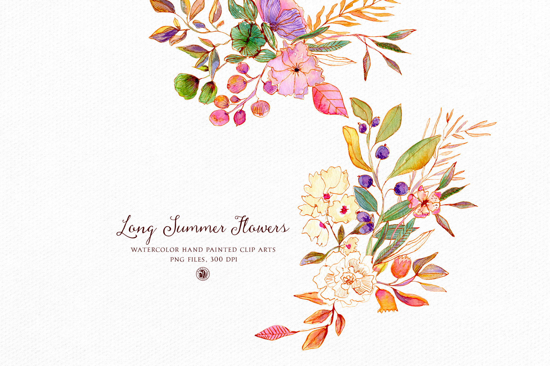 Long Summer Flowers - watercolor set