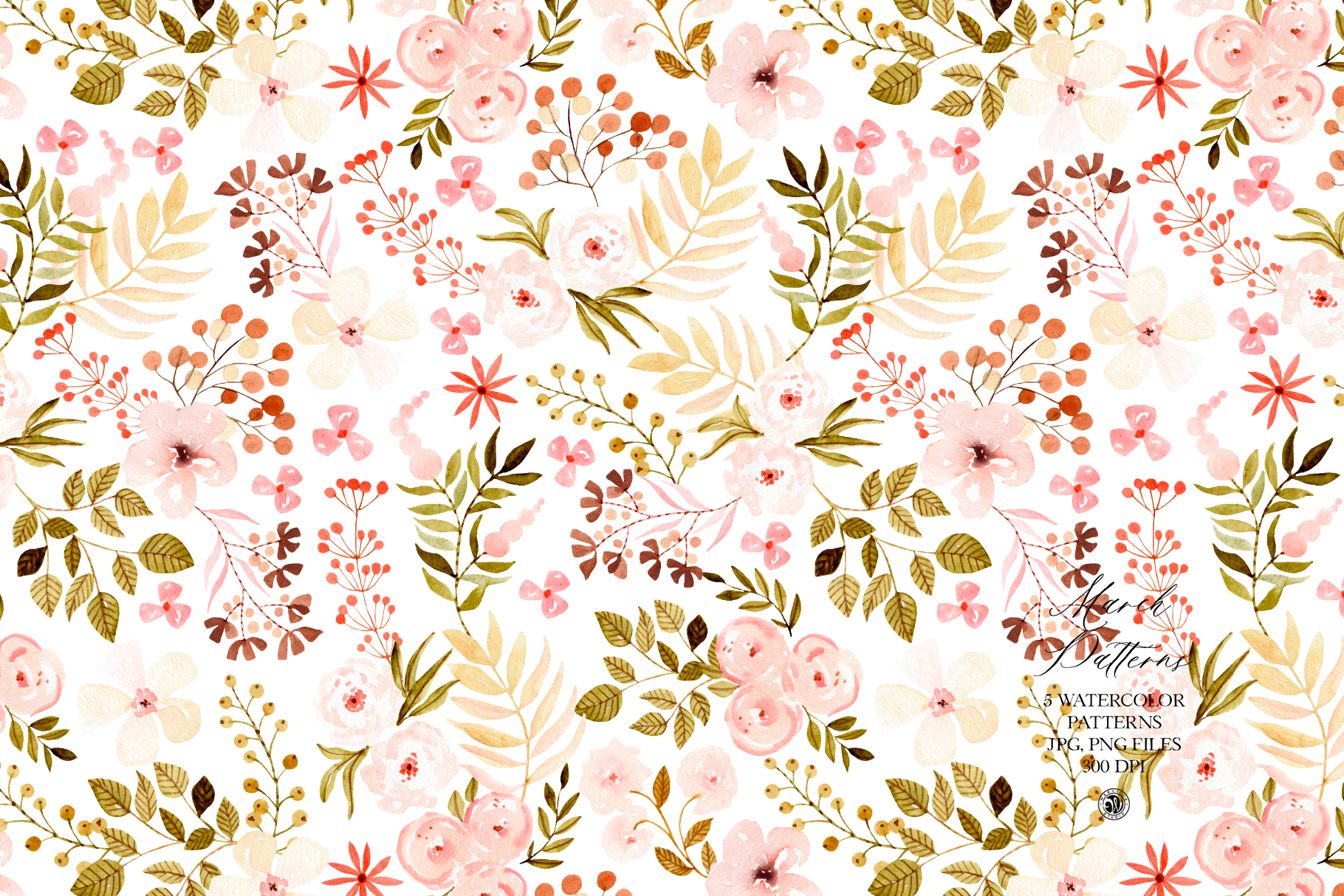 March Watercolor Patterns