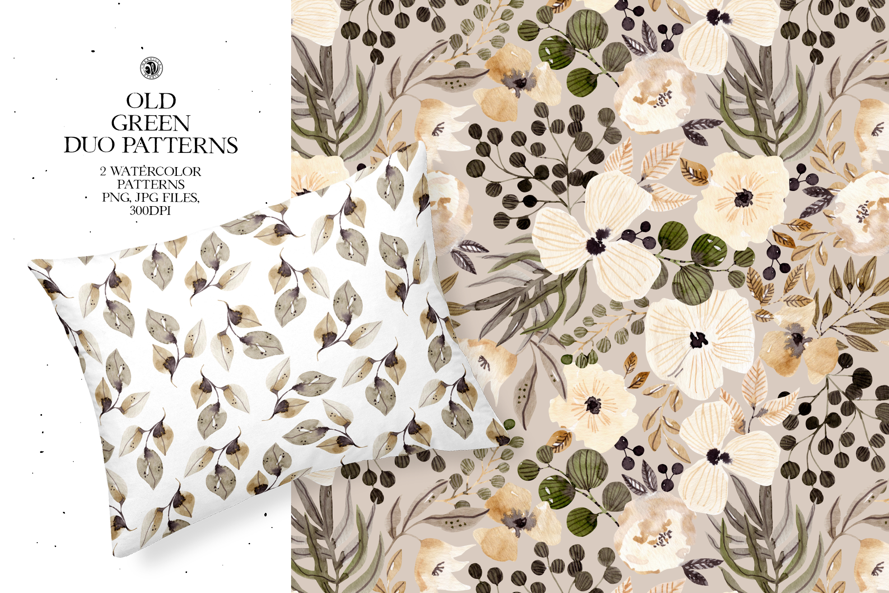 Old Green Watercolor Patterns