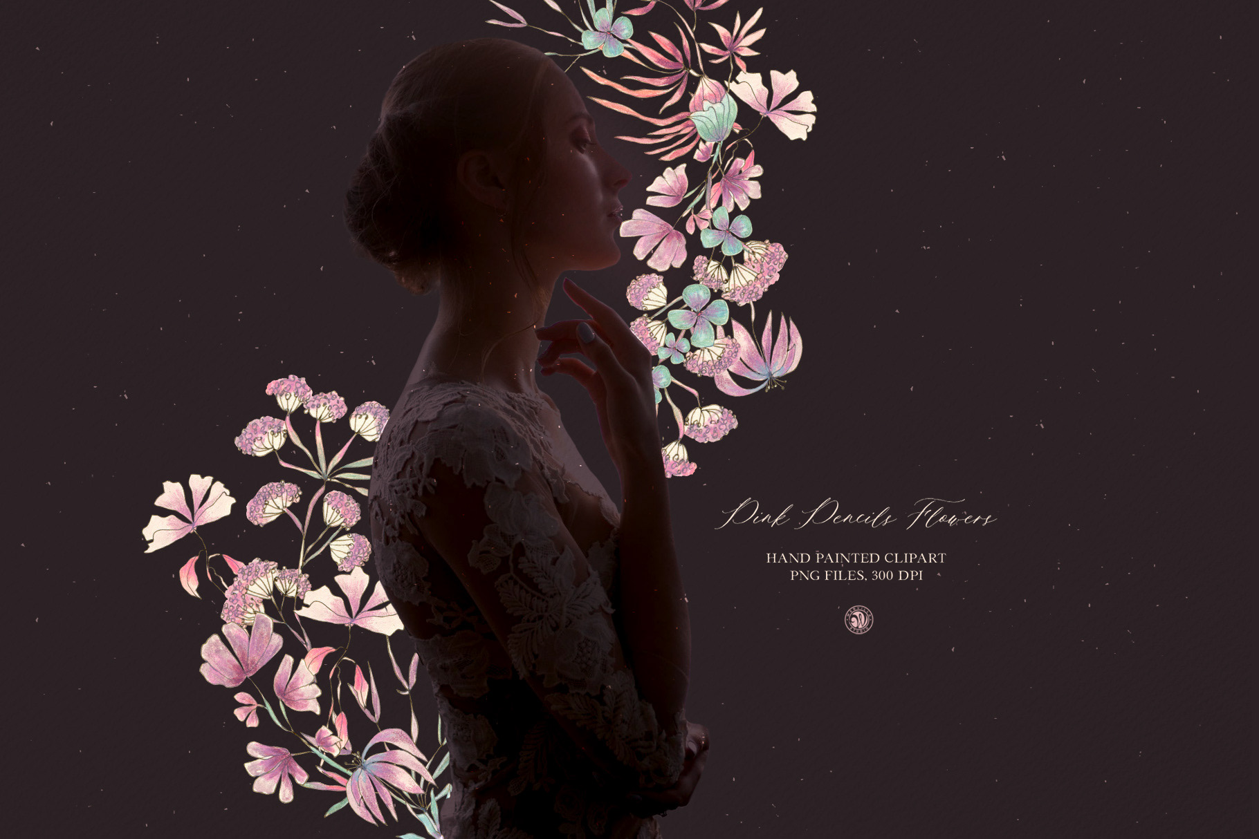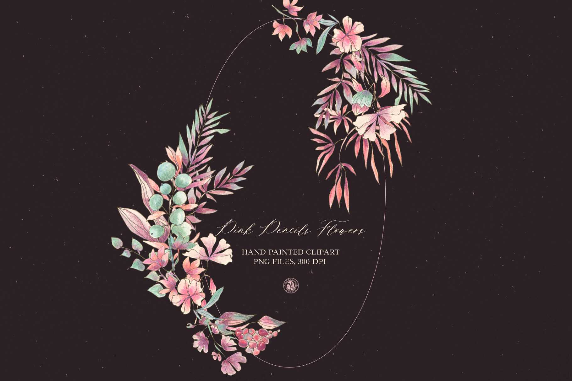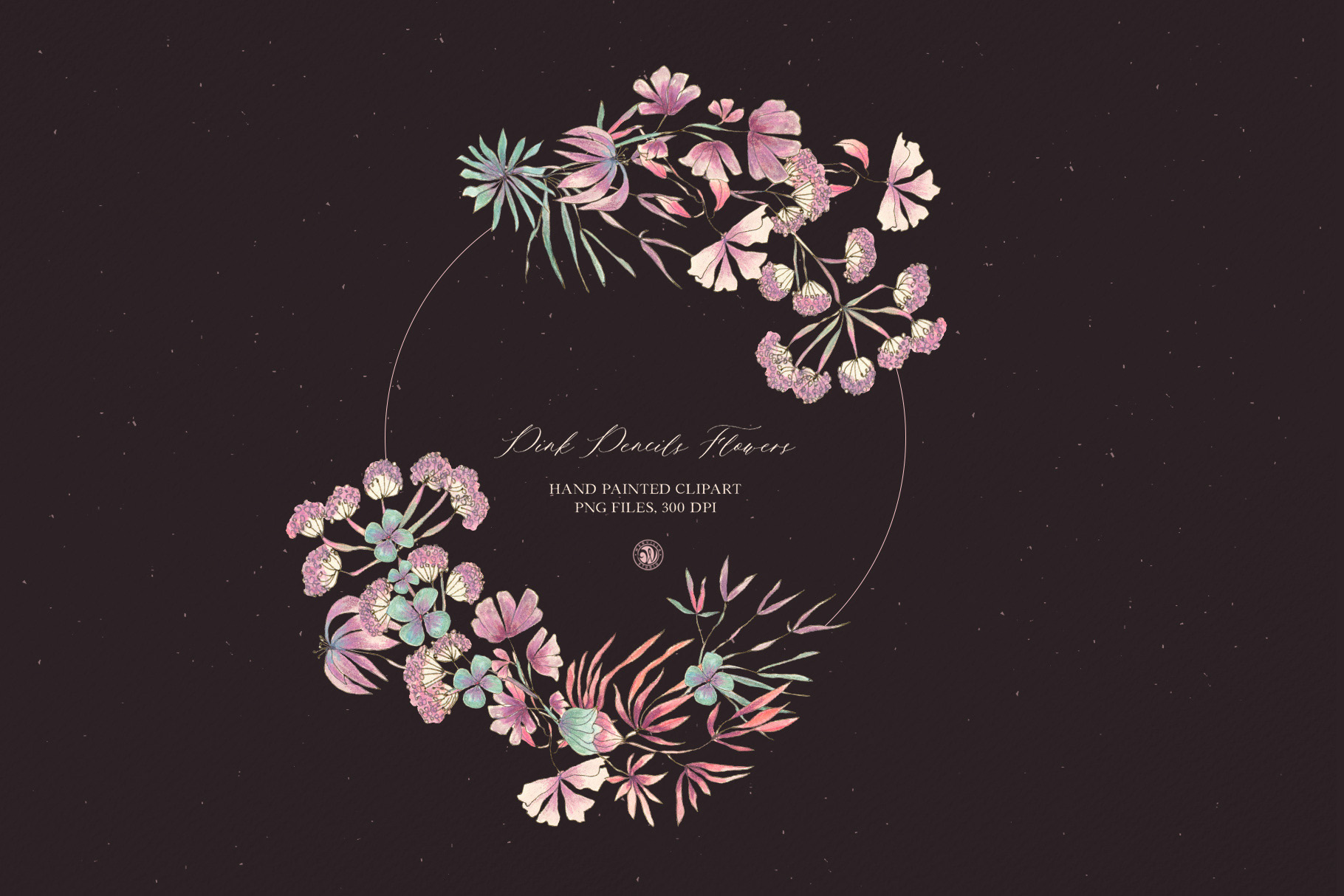 Pink Pencil Flowers - colored pencils floral clipart