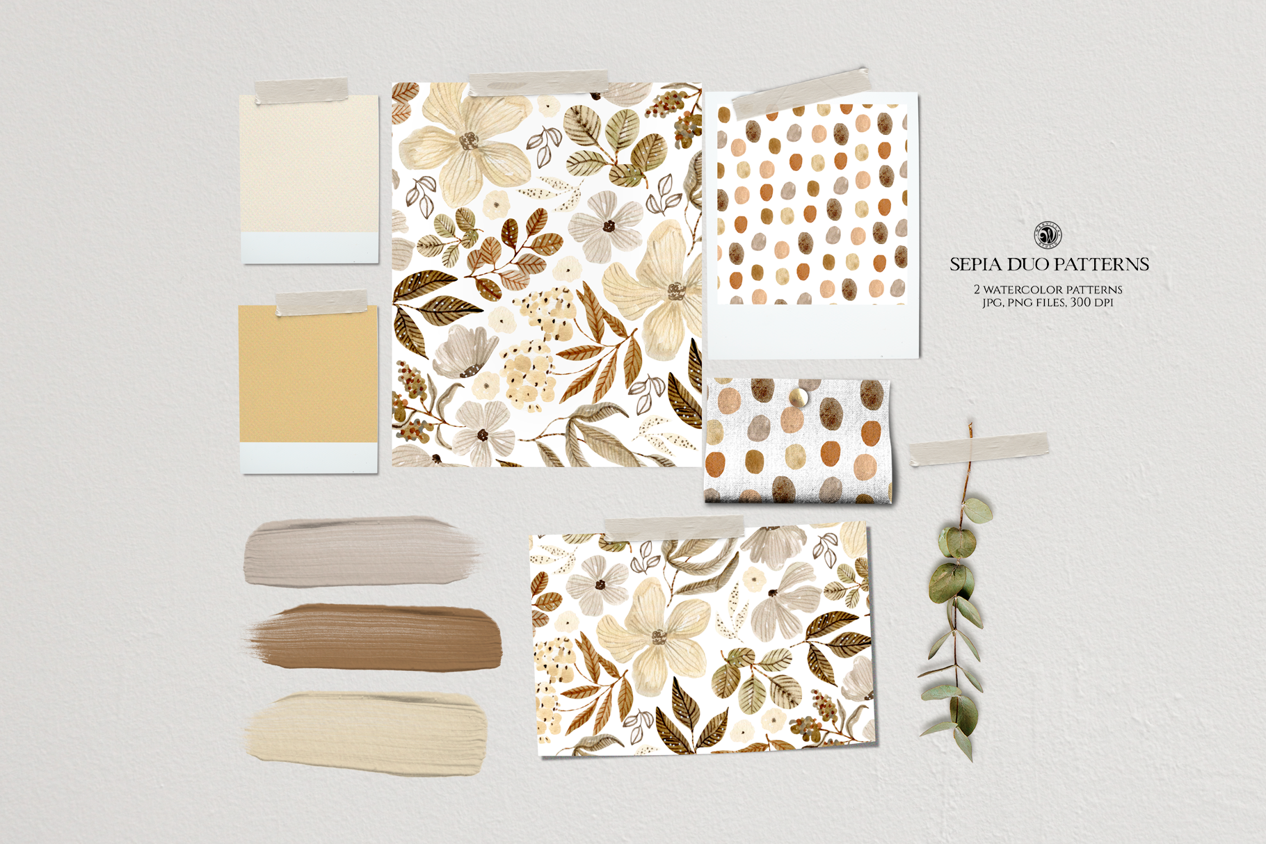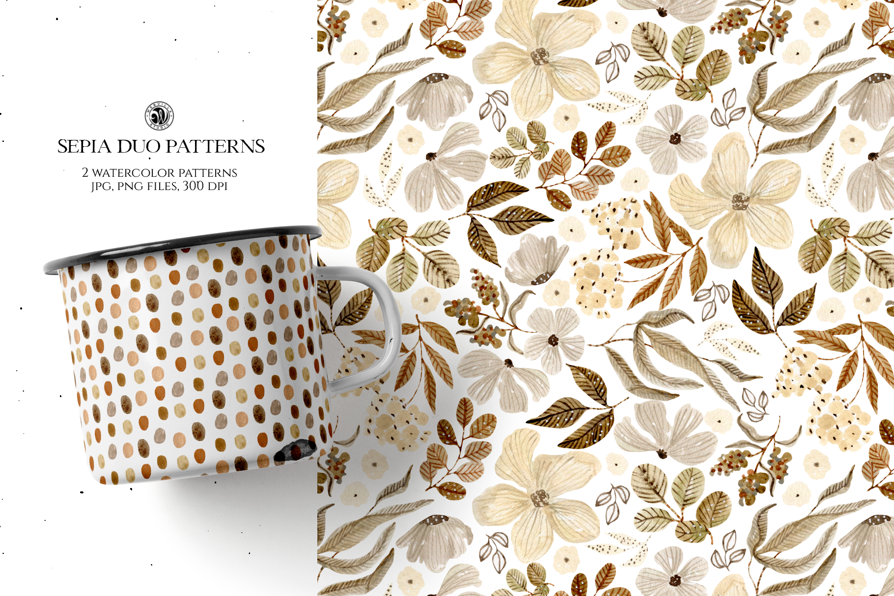 Sepia Duo Floral Patterns